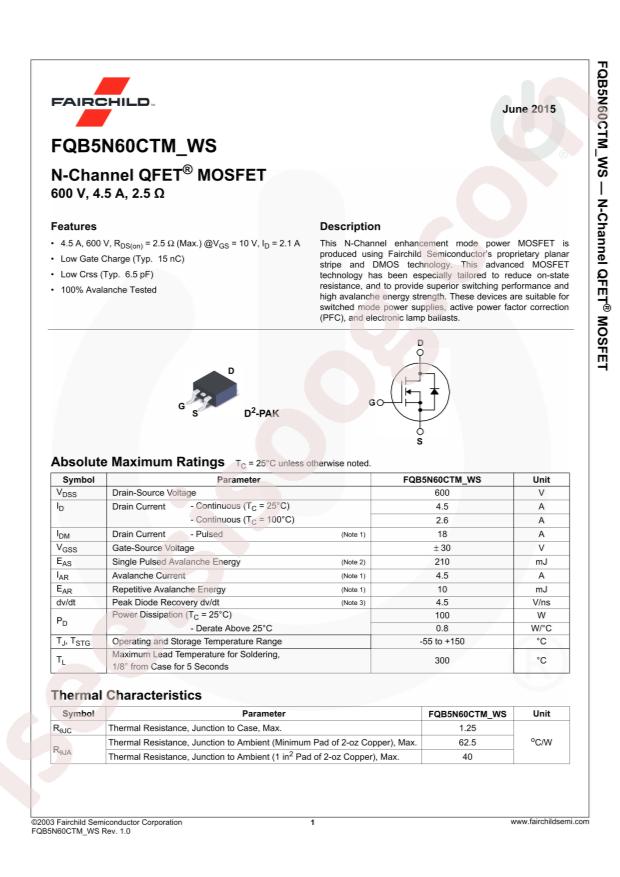 دیتاشیت FQB5N60CTM-WS