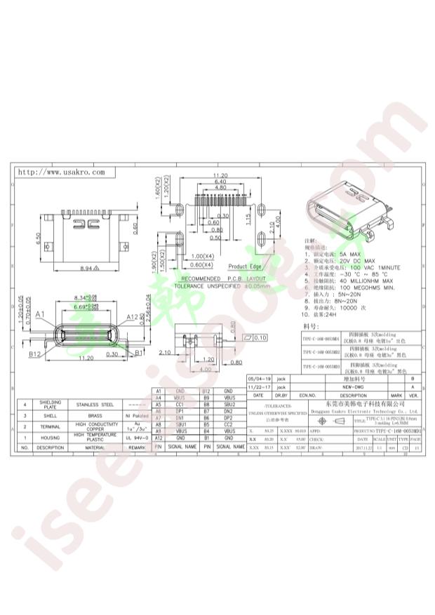 - Datasheet: USAKRO TYPE-C-16M-0053MD1