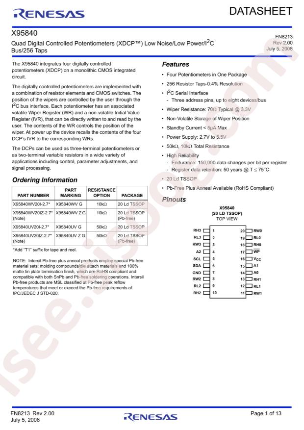 - Datasheet: RENESAS X95840WV20IZ-2.7T1